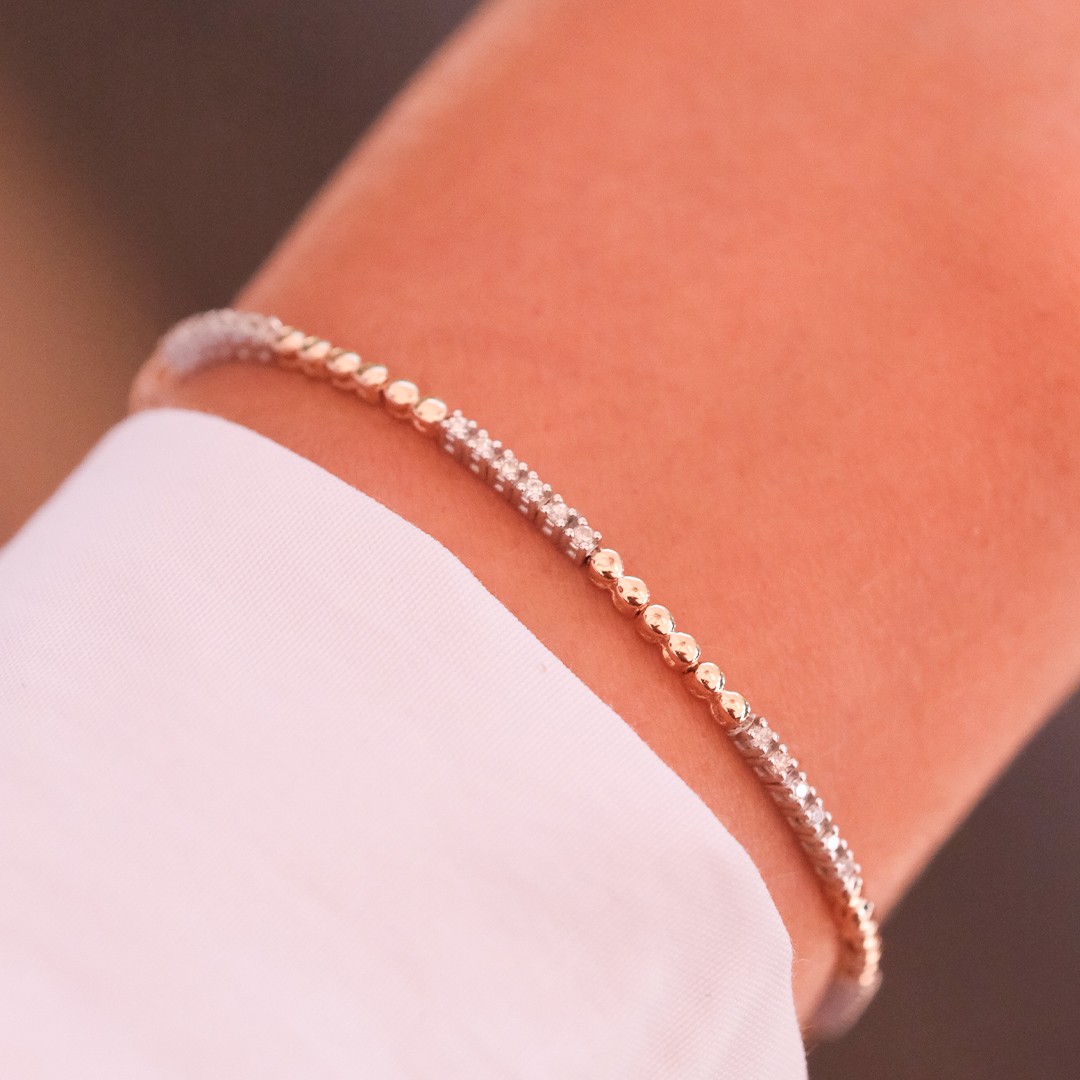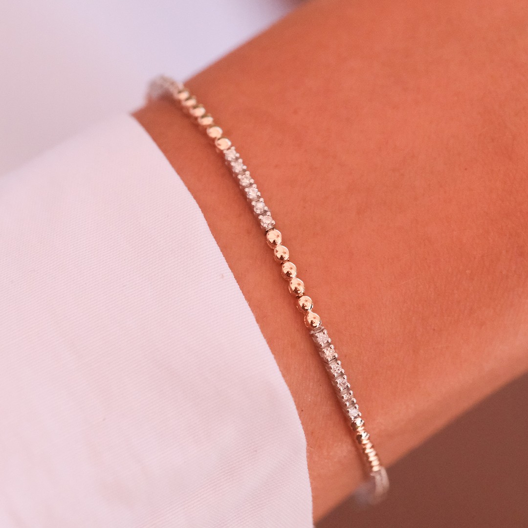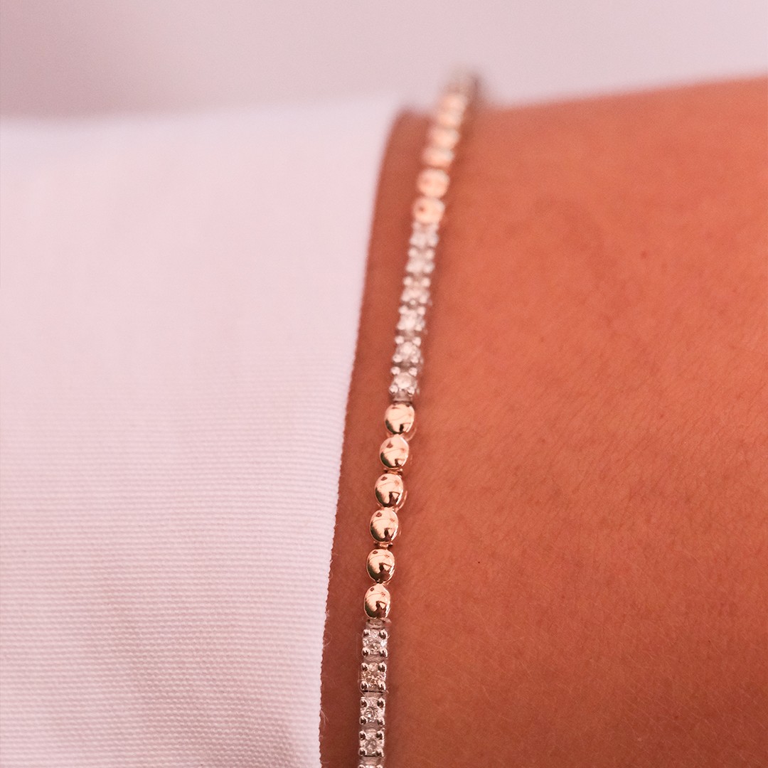Toplamda 0.38 karat F renk SI berraklığında aralıklı pırlantalar kullandık.Hem şık hem de zarif pırlanta bilekliğimizi istediğiniz şekilde kombinleyebilirsiniz !