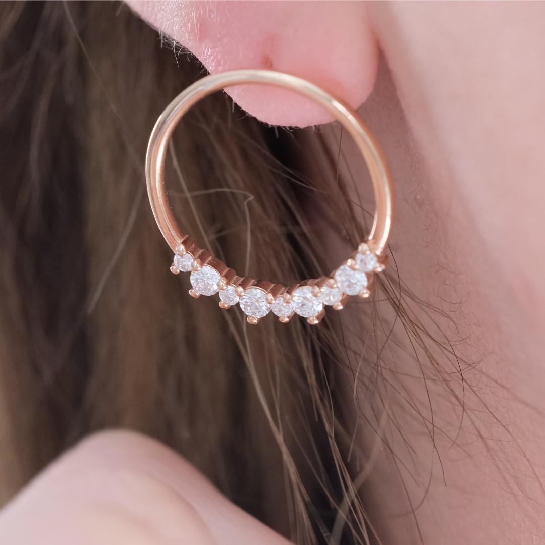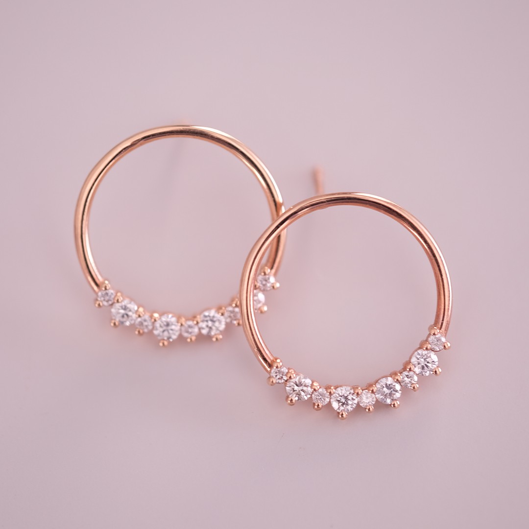 Bu tasarımımızda toplamda 0.65 karat F renk SI berraklığında beyaz pırlanta kullandık. Modern halka küpeye pırlanta ile ışıltı kattık!