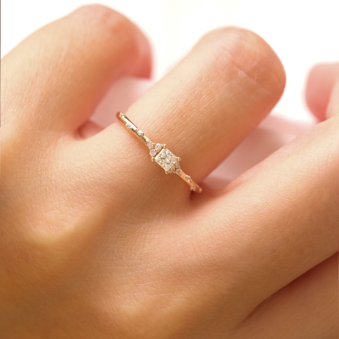 0.16 ct prenses kesim pırlanta yüzük – kare formda modern ışıltı